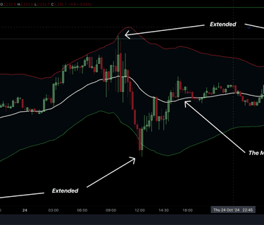 In financial markets, price movements often follow a normal distribution, with about 68% of price action falling within one standard deviation of the mean (the center of the bell curve). This means that extreme price movements (those far from the mean) are relatively rare and tend to "snap back" toward the average, making these moments prime opportunities for mean reversion trades. By focusing on these extremes, traders can capitalize on predictable, high-probability moves back to the mean.